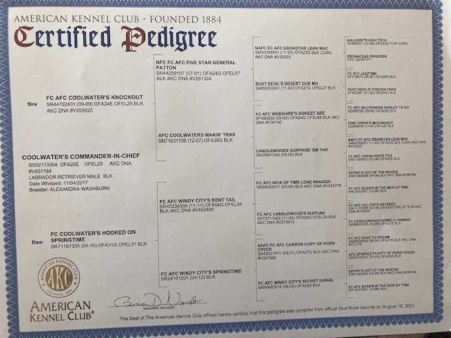 Coolwaters Trump is an upcoming star out of Coolwater Kennels. QAA, Open and Amateur Placements workong towards FC AFC titles. Very well bred. Excellent pedigree. He is actively running in Field Trials. Very nice pedigree. We are excited to see the puppies in this breeding performing in the field.