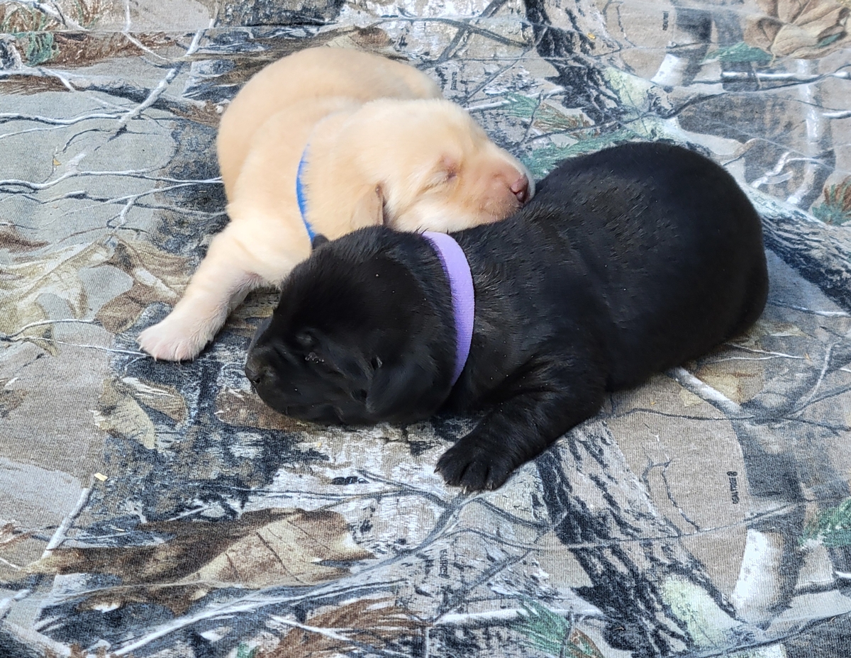 Full AKC Registered Exciting Black and Yellow Litter born October 24th. Ready for their homes early December 2025. This litter should make excellent competitors in competition work, hunting homes and active family companions. Along with Search and Rescue, emotional support dogs. Bred to perform at any level and environment. We taking deposits now for this litter. Please contact us for more info and availability. Currently 1 Yellow Male puppy available.