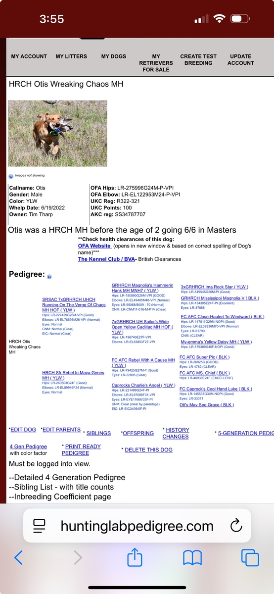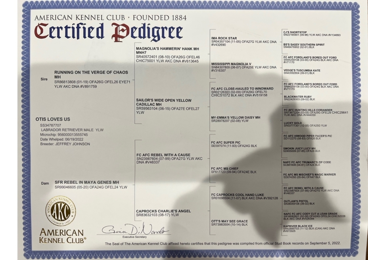 Sire: HRCH Otis MH (son of SRSAC 6xGRHRCH UH Chaos MH Hall of Fame and HRCH Maya MH - Rebel in Maya Genes)