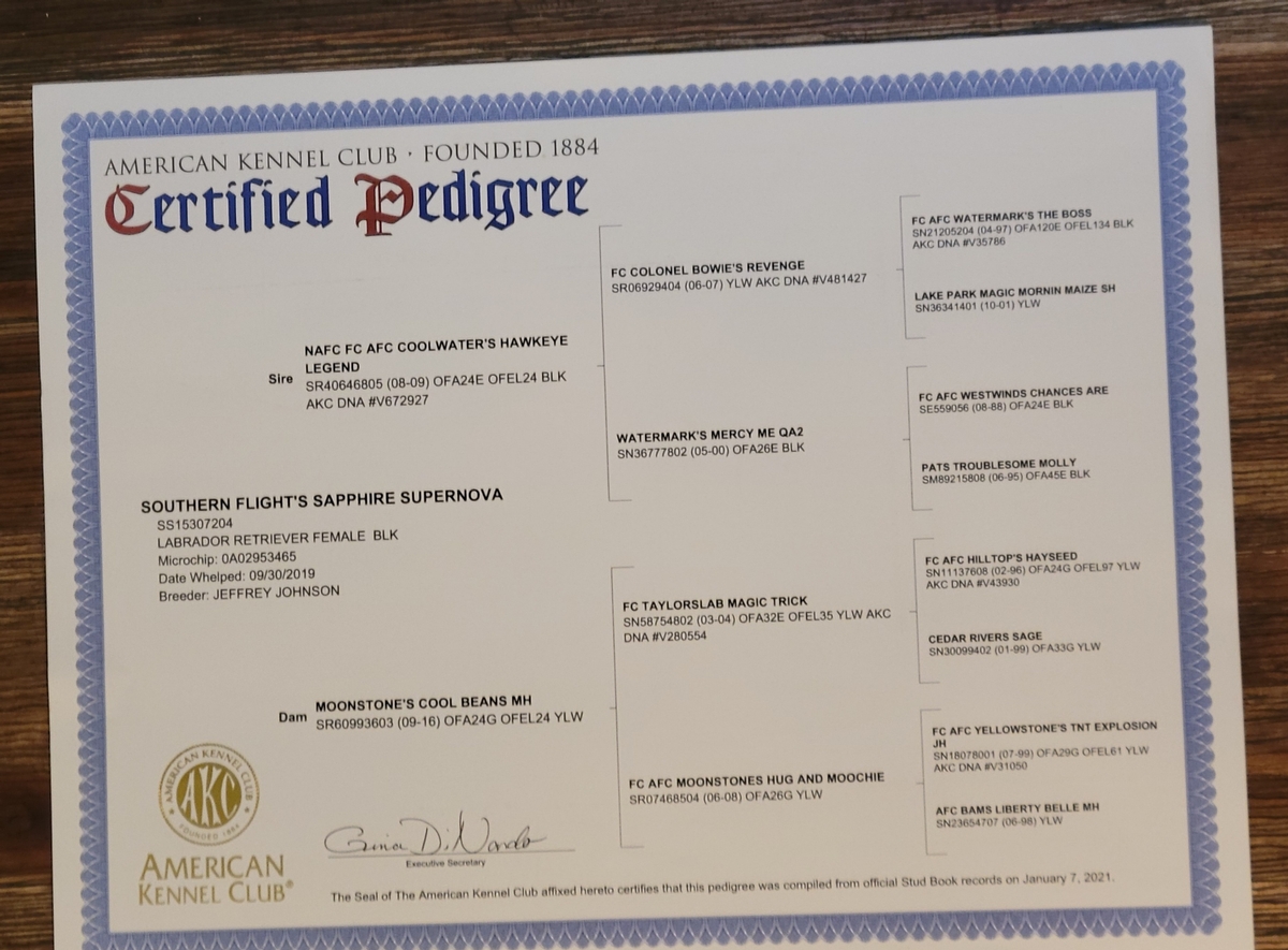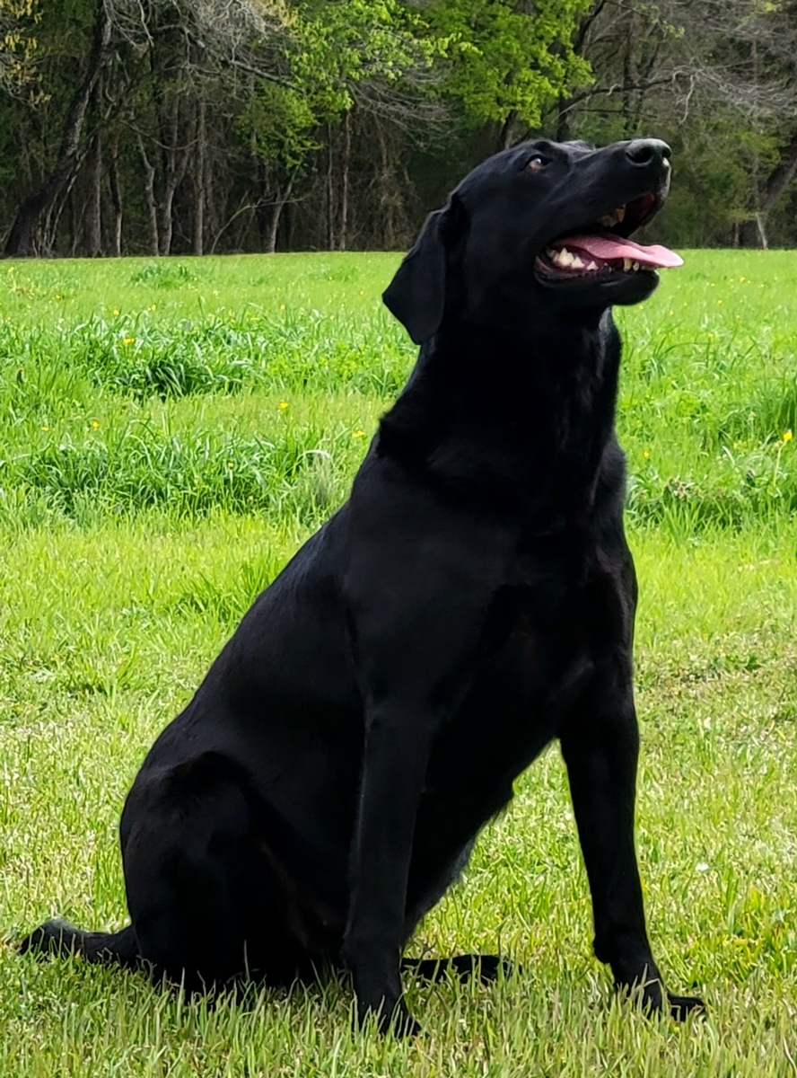 Nova is a Beautiful black female. She weighs around 65lbs. She is a very kind hearted dog that loves her people and interacting with the other dogs. She produces beautiful puppies. Nova is the daughter of NAFC AFC FC Coolwaters Legend and a very strong Field Trial pedigree.