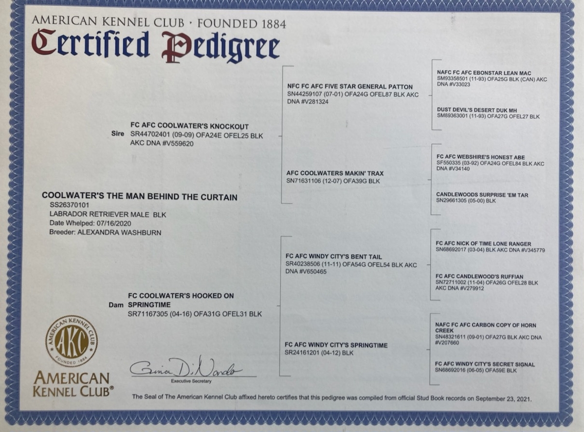 Wizard is an upcoming star at Coolwater Kennels. He is earned his AFC title only 2 points away from his FC title. Youngest dog to qualify for 2021 derby national. AFC at two years old. Qualified for the national amateur and the national open at two years old. Excellent Field Trial pedigree.