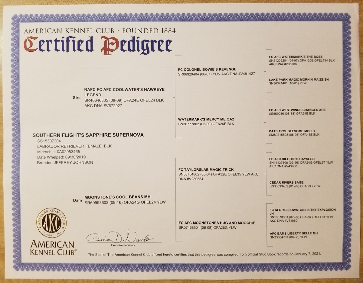 Nova has a beautiful body conformation. Very nice temperament for family's and does well with other dogs. She is ou of a excellent Field Trial pedigree. She is the daughter of NAFC FC Coolwaters Legend.