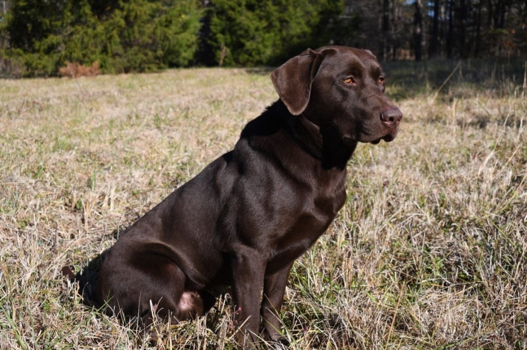 Magic is a beautiful dark chocolate female. She loves to retrieve on land or water. Magic is always eager to be on a adventure. Great loyal personality. Her puppies should make excellent competitors, search and rescue, emotional support animals, family companions etc..