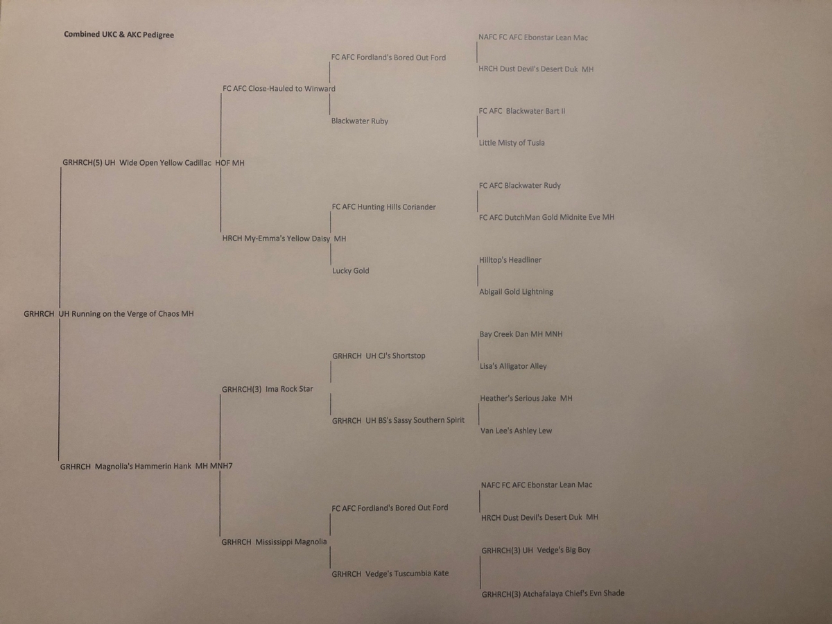 Sire: GRHRCH UH Runnin on the Verge of Chaos MH